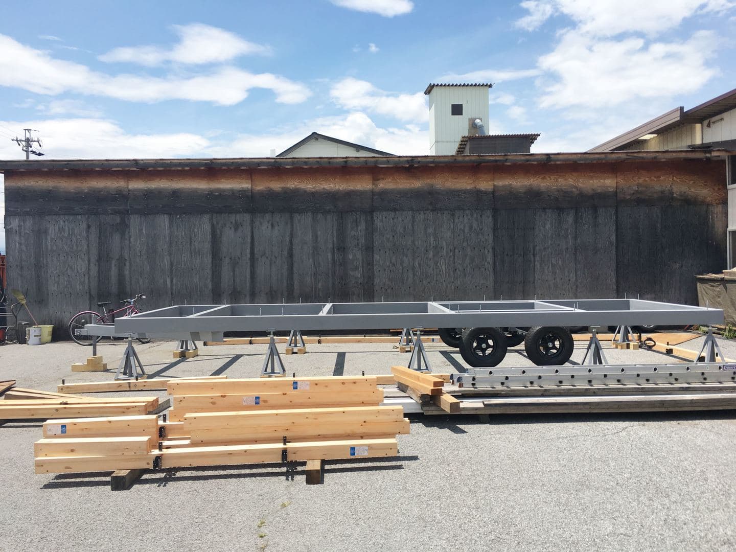 トレーラーハウスは、鉄骨のシャーシ(フレーム)の上に乗った構造物です。